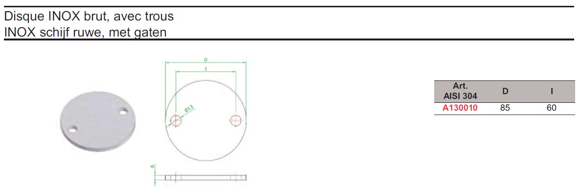 | A130010 | Rondelle inox 304 Ø85 + 2tr | 2 | 12.77 |